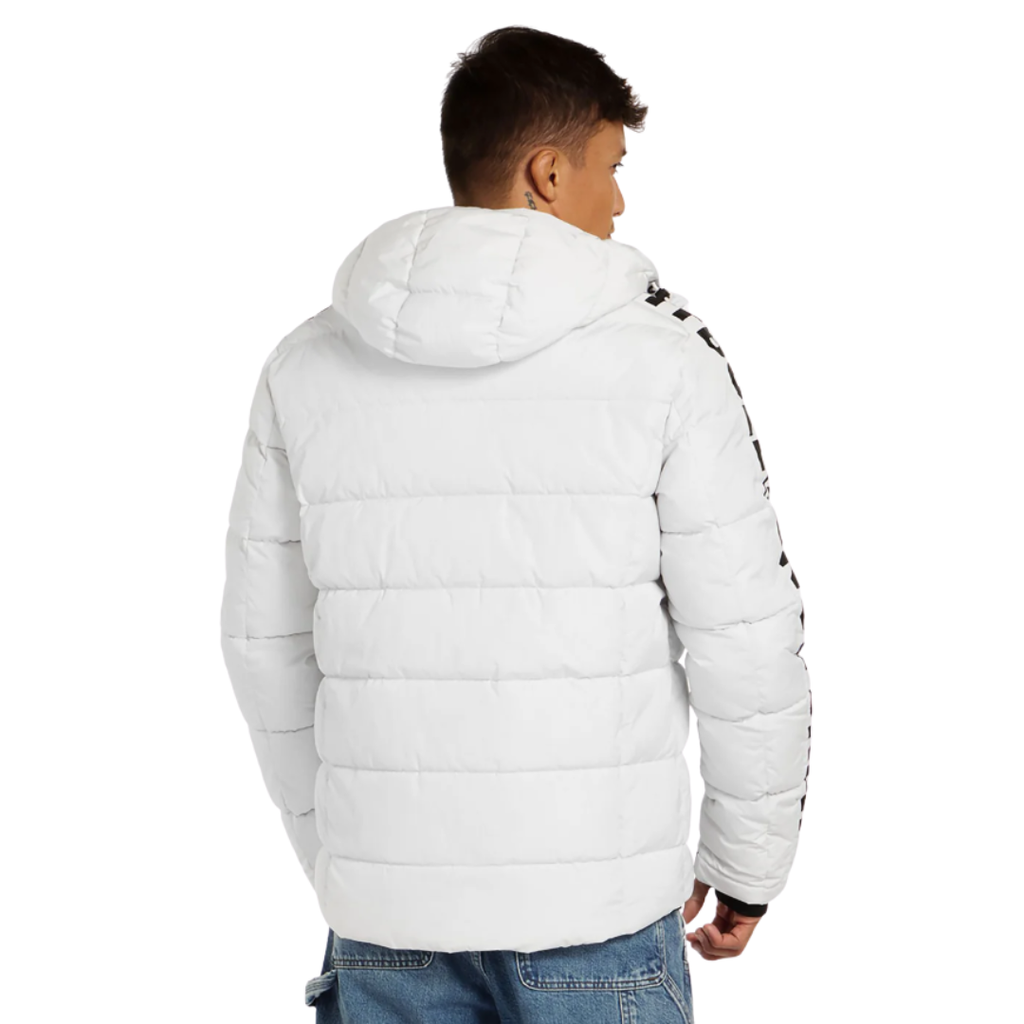 Die gesteppte Jacke ist aus robustem Nylonstoff gefertigt und mit einer dicken, wärmenden Fütterung ausgestattet. Dank der integrierten, isolierten Kapuze mit verstellbarem Kordelzug und dem hohen Stehkragen bist du zuverlässig vor Wind und Kälte geschützt.
