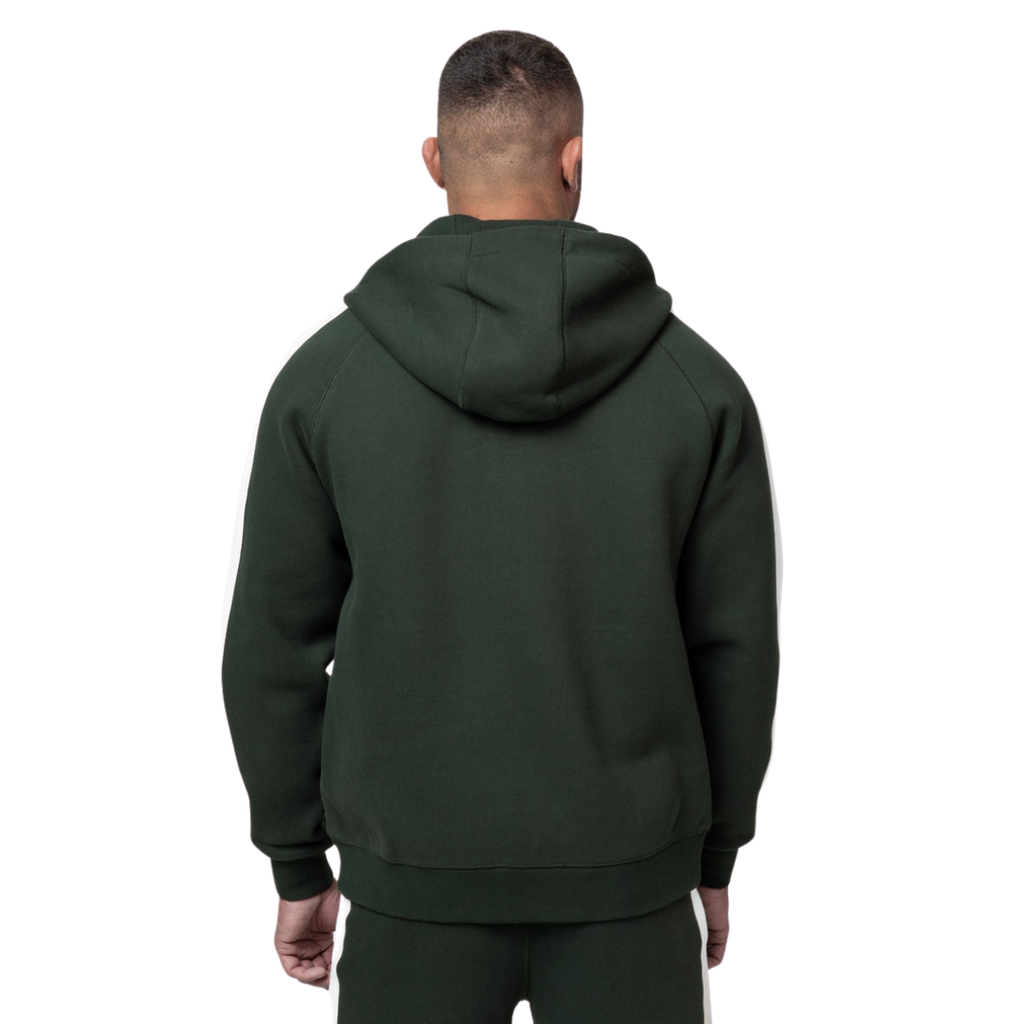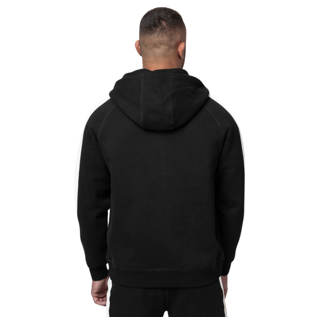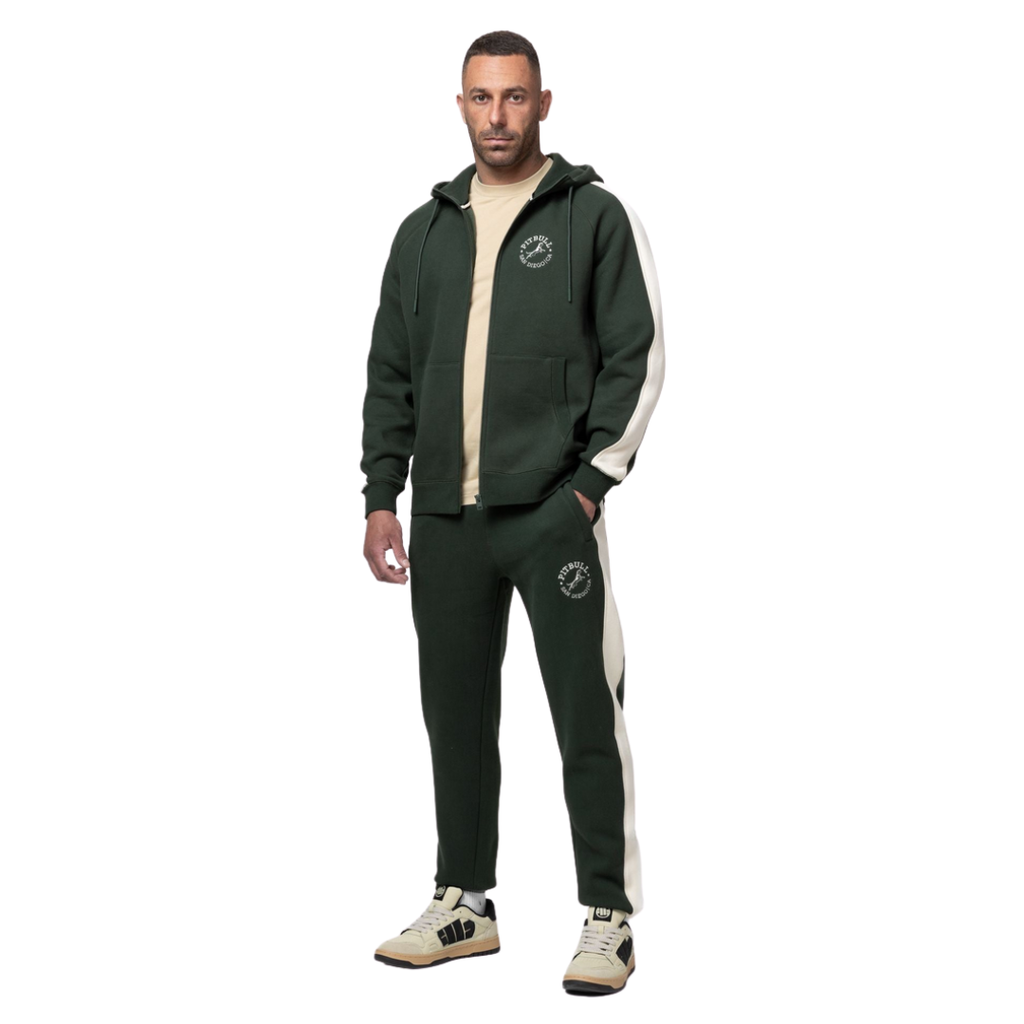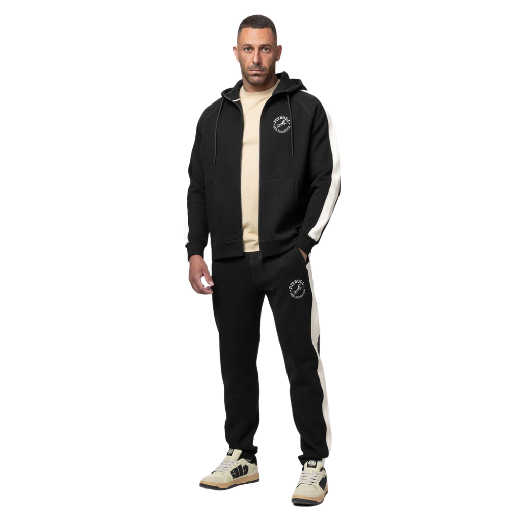 Der durchgehende Metallreißverschluss, die großen Fronttaschen und die verstellbare Kapuze mit breitem Kordelzug bieten Funktionalität und Komfort im Alltag. Stylische Details wie breite Seitenstreifen entlang der Ärmel, ein bestickter Pitbull-Aufnäher auf der Brust und sportliche Raglanärmel verleihen dem Hoodie einen authentischen Urban-Look.