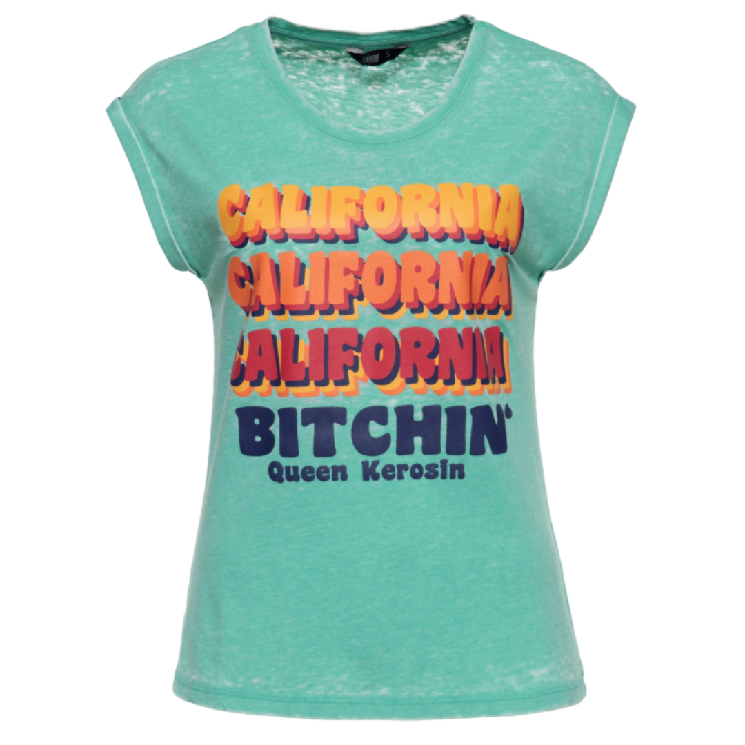 Queen Kerosin Damen T-Shirt Enzymwash California in Mint