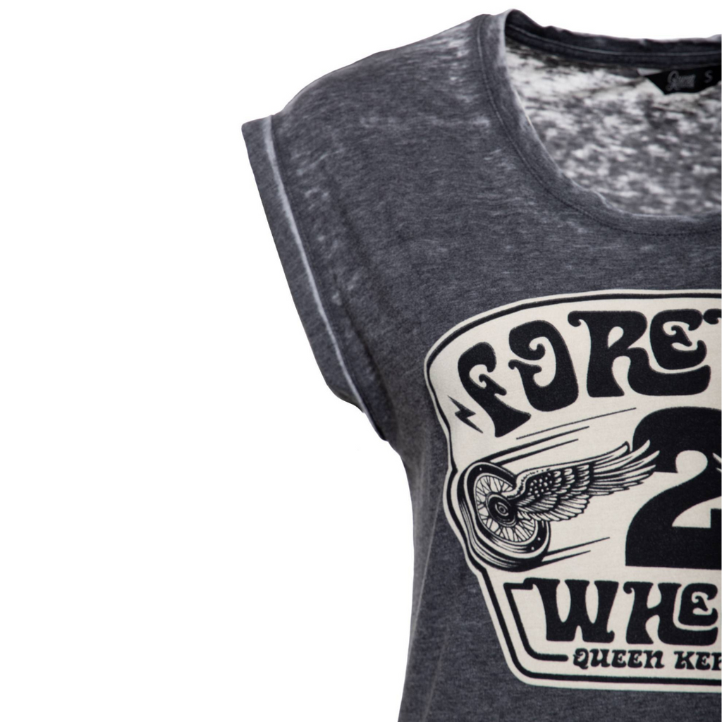 Queen Kerosin Damen T-Shirt Enzymwash "Forever 2 Wheels" in Anthra